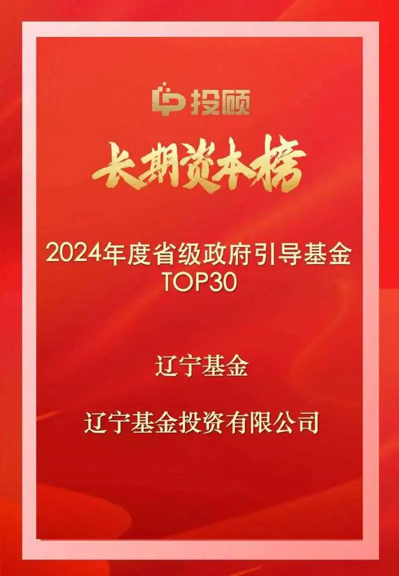 2025年1月15日,LP投顧發布“長期資本榜-2024年度機構LP系列榜單”,以表彰為VC/PE行業高質量發展做出積極貢獻的各類LP長期資本。遼寧基金入圍長期資本榜之“2024年度政府引導基金TOP50”、“2024年度省級政府引導基金TOP30”兩張榜單!